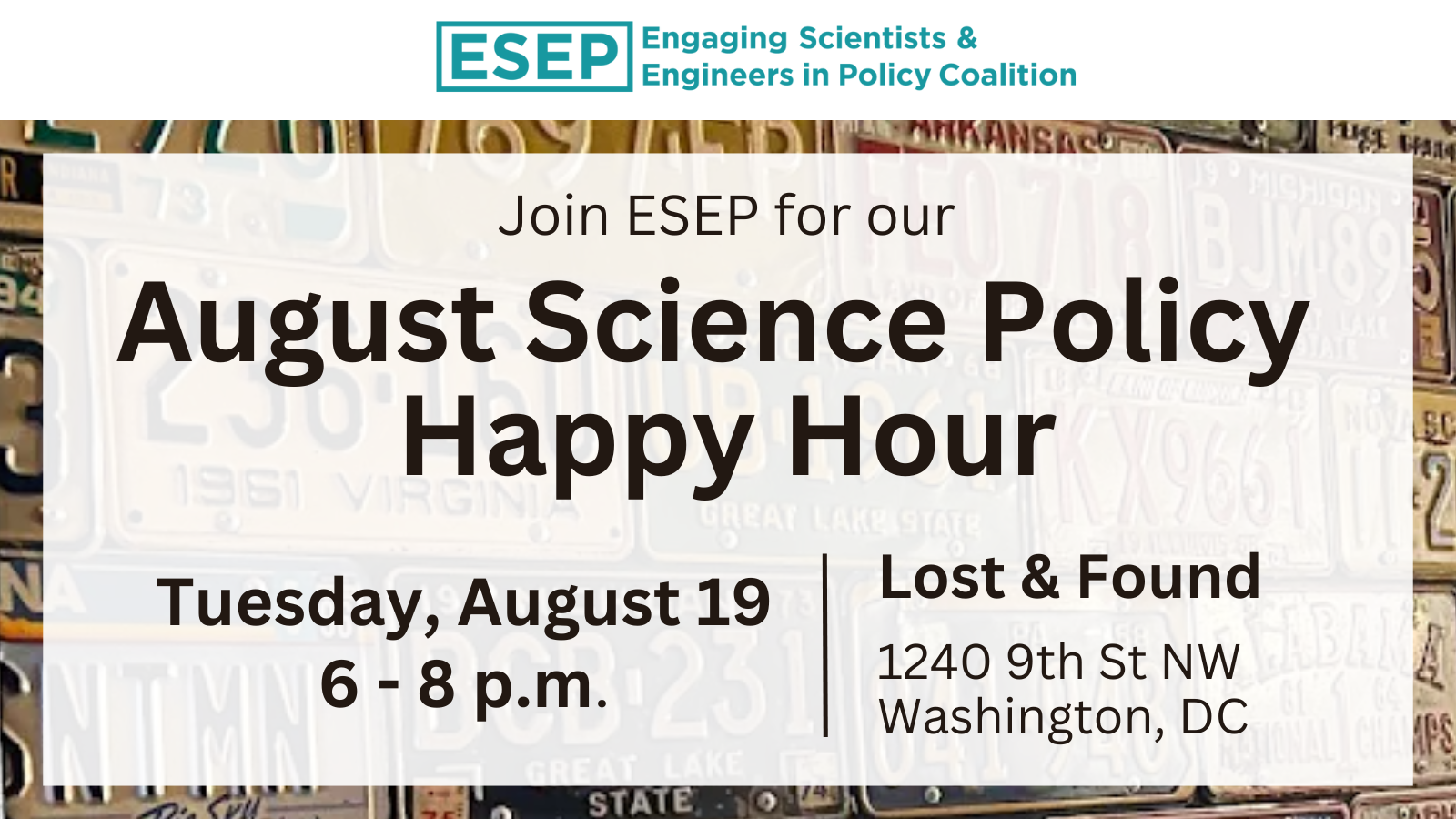 Contact esepcoalition@gmail.com if you're interested in hosting science policy happy hours in your region in the post-pandemic future.